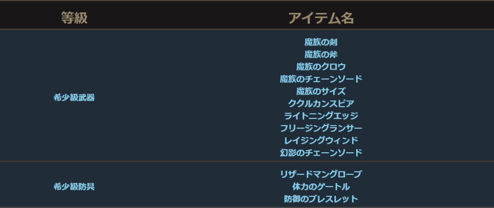 アップデート対象の装備は以下となり、各種装備の発動魔法の射程や追加ダメージや命中の増加、能力値の追加等の様々なアップデートが行われております。