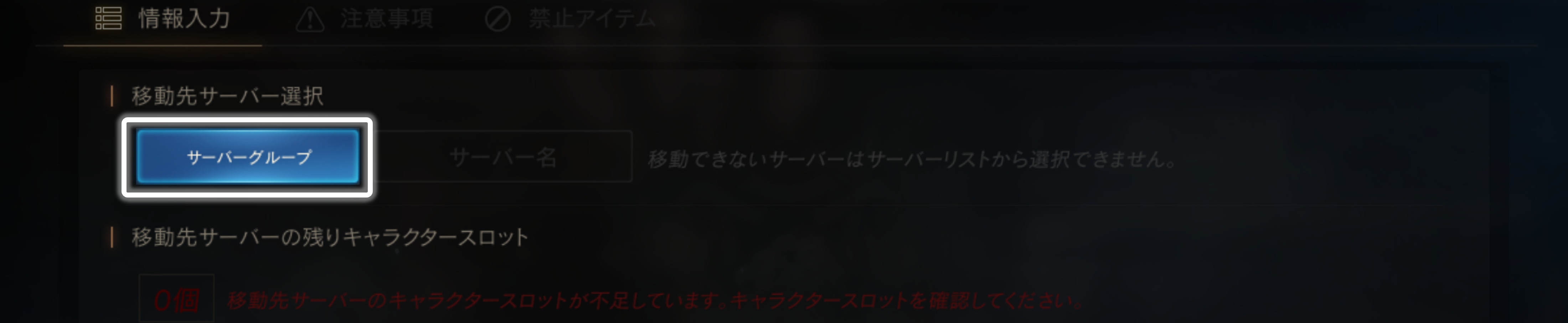 ・移動後サーバーに移動したキャラクターと同一名称のキャラクターが存在する場合は、新しいキャラクター名称を設定する必要があります。