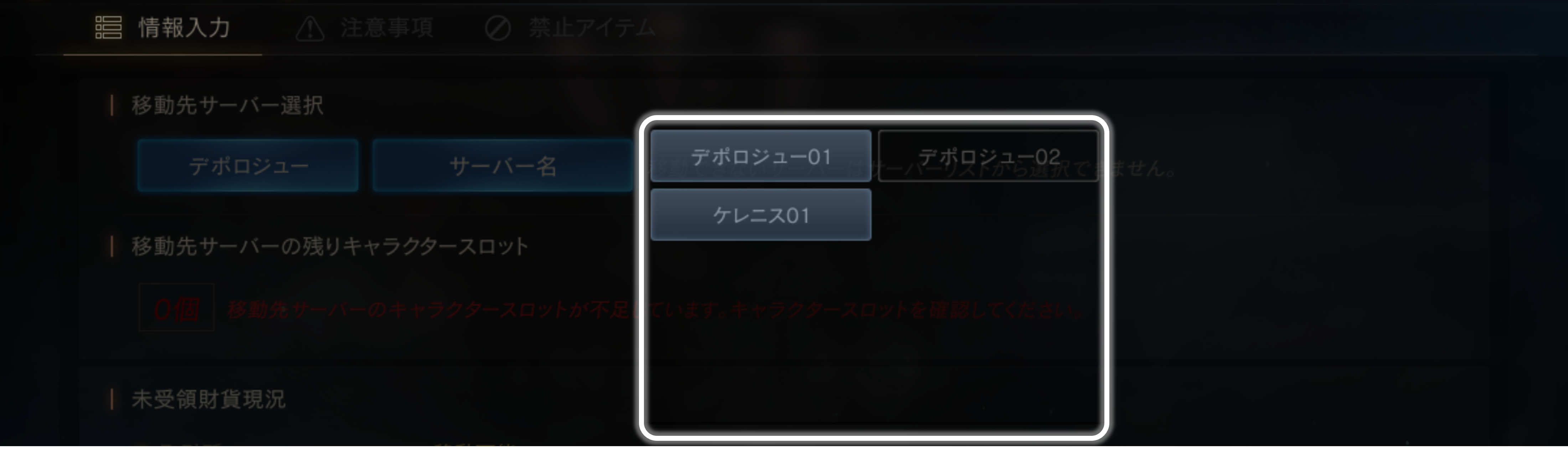 ・移転先に指定したサーバーにキャラクタースロットの空きがない場合
