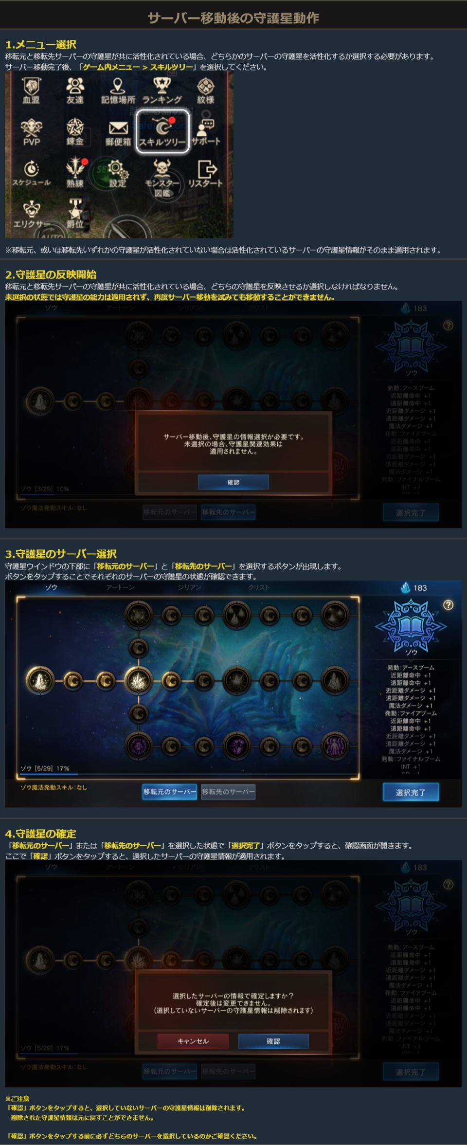 ・サーバー移動後、守護星の選択を行うまで次のサーバー移動は出来ません。