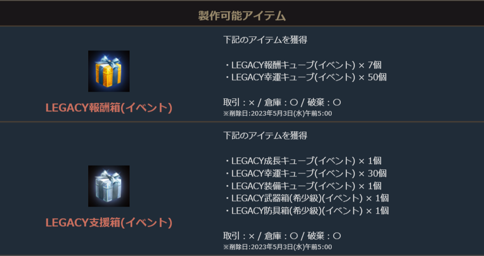 報酬アイテムで製作可能なアイテムの説明において一部わかりにくい表現がありましたため、修正いたしました。