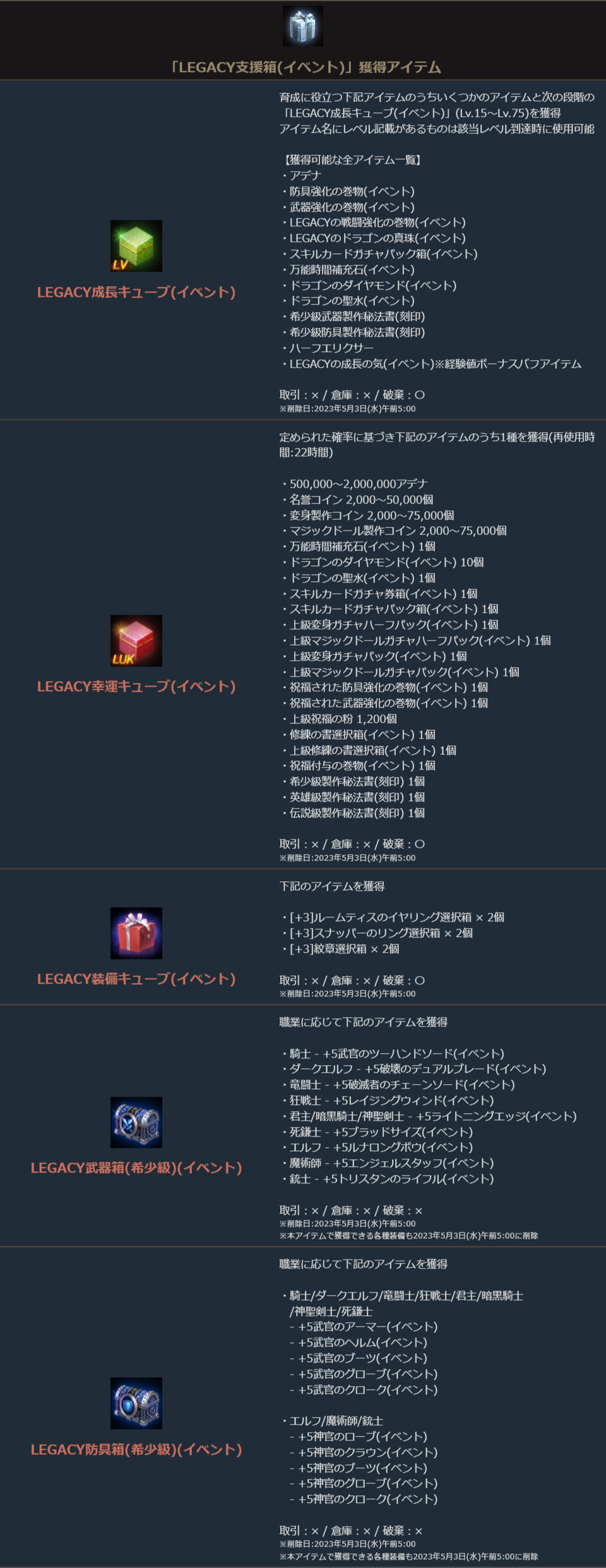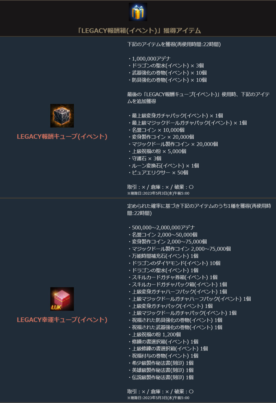 ※報酬受取時にインベントリに空きがない場合、空きが出来るまでアイテムは表示されません。