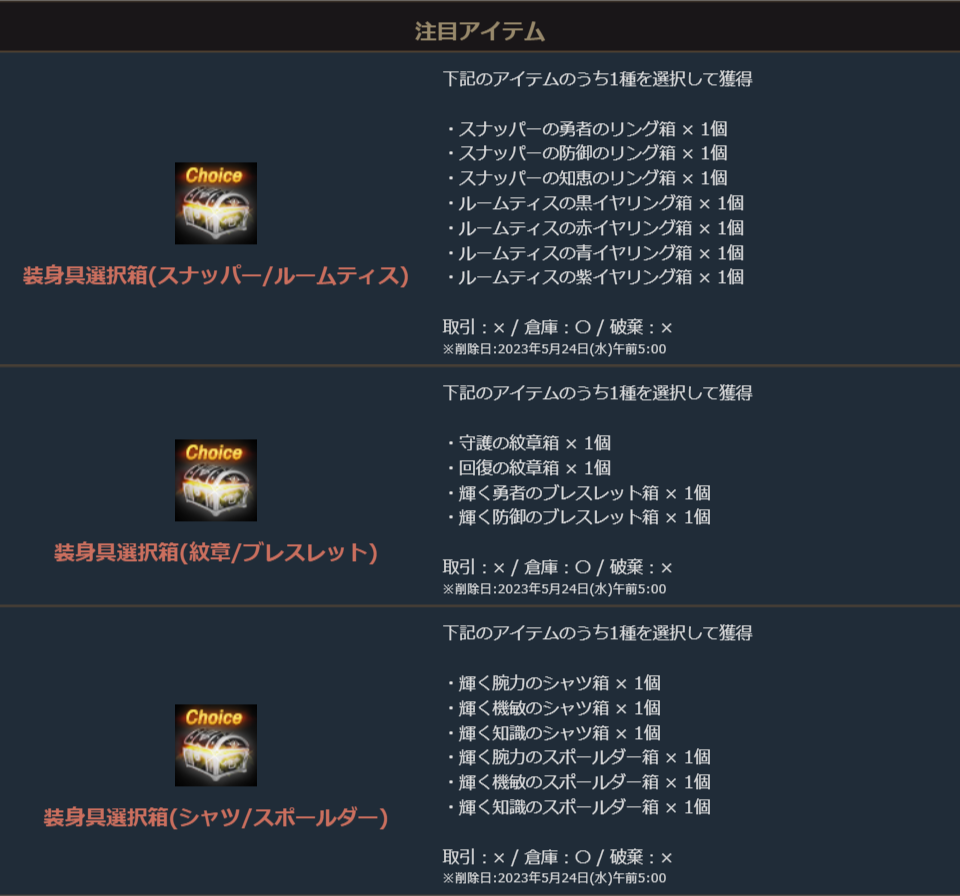 ※一部アイテムは未使用の場合、一定期間が経過すると自動で削除されます。詳しくは各アイテムの詳細をご確認ください。