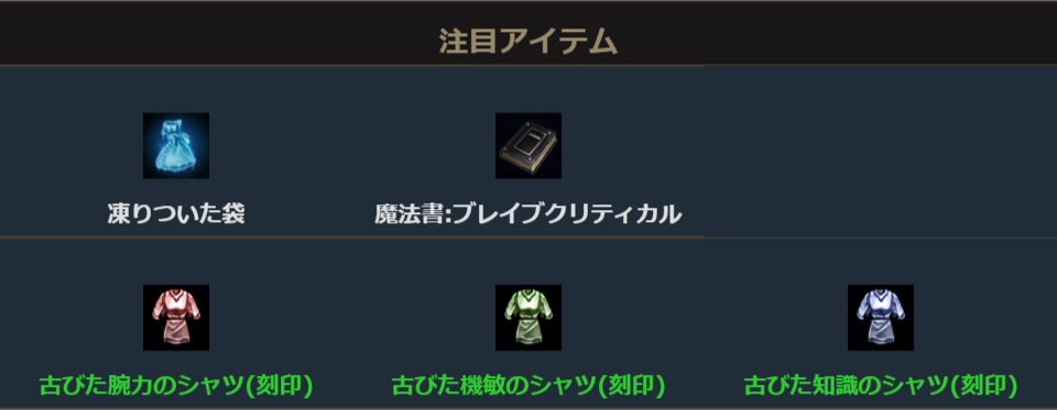 また、リニューアル後の雪壁にて獲得出来る注目アイテムは以下になります。