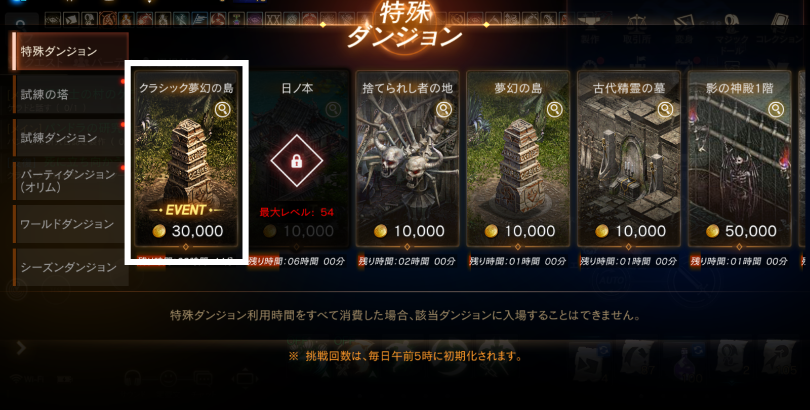 特殊ダンジョン「クラシック夢幻の島」はレベル75~で利用可能な特殊ダンジョンです。