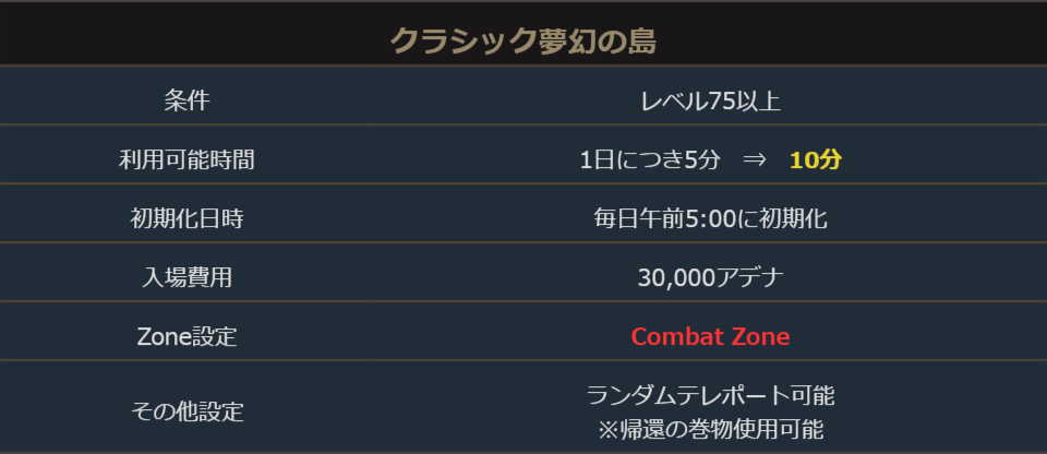 イベント期間中、特殊ダンジョン「クラシック夢幻の島」の利用可能時間が延長になります。