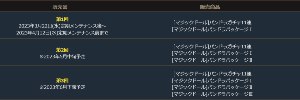 2023年3月23日(木)15時30分に実施した臨時メンテナンスにおきまして「[マジックドール]パンドラパッケージⅠ」の不具合修正を行いました。