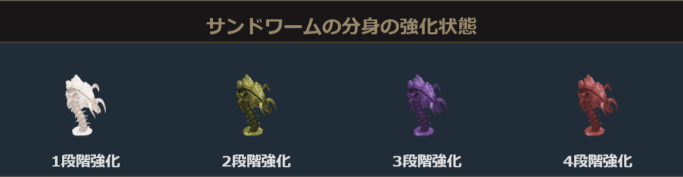 強化されたサンドワームの分身は下記のような色に変わり強化状態の判別が可能になります。