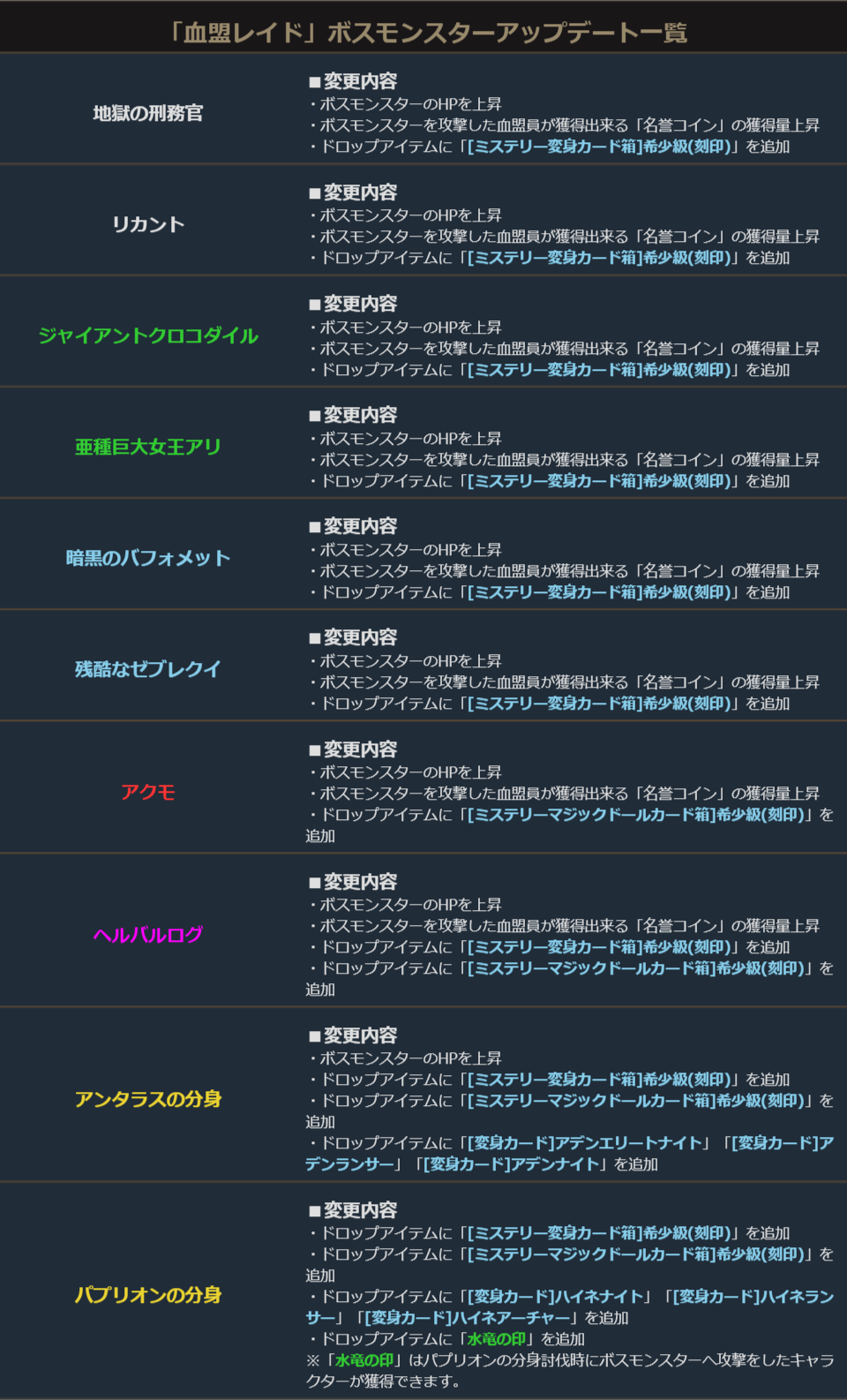 血盟レベル5以上の血盟が行う事が出来る、「血盟レイド」をアップデートしました。