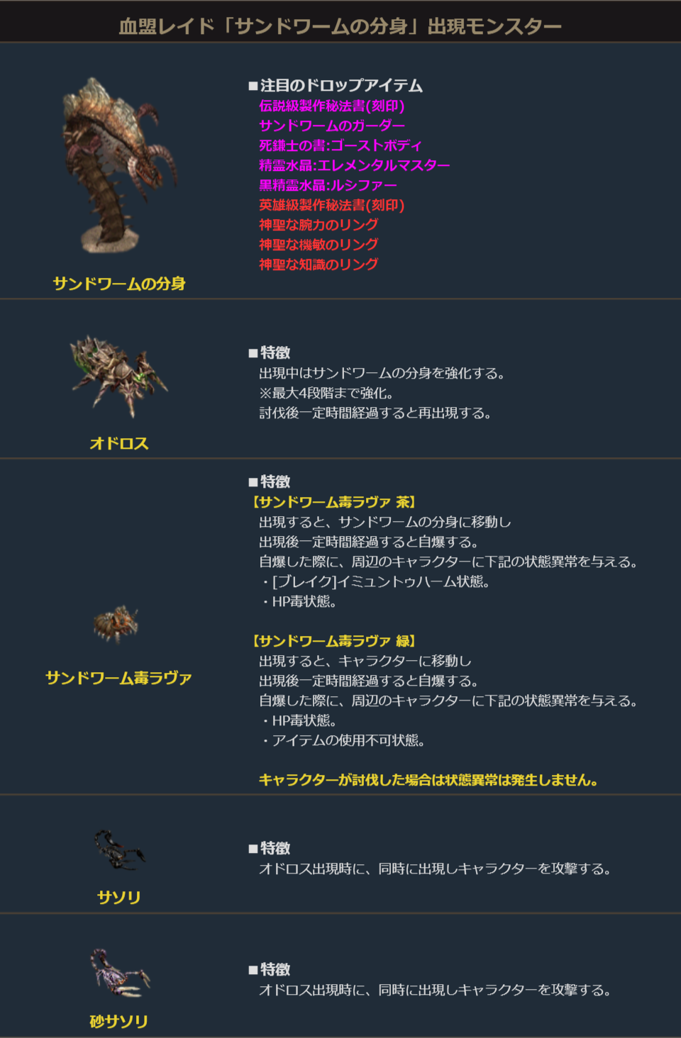 新たに神話級血盟レイド「サンドワームの分身」を追加しました。