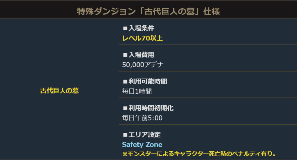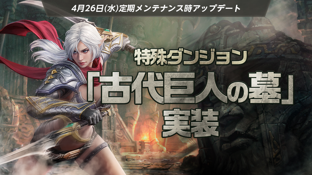 毎日1時間利用が可能な新しい特殊ダンジョン「古代巨人の墓」を実装しました。