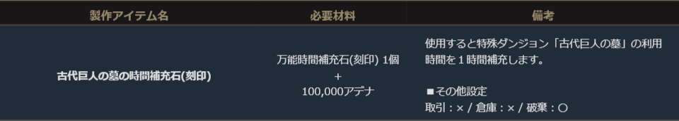 ※「古代巨人の墓の時間補充石(刻印)」はゲーム内の「ショップ>名誉コイン」のタブより「名誉コイン2.000個」と交換で1日最大3個まで交換が可能です。