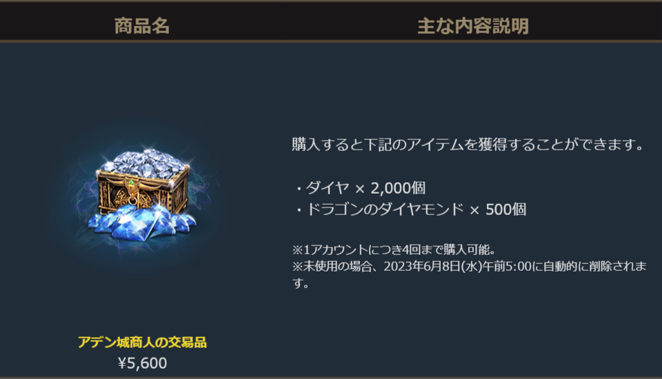 ダイヤに加えドラゴンのダイヤモンドが500個獲得できるお得なパッケージです。