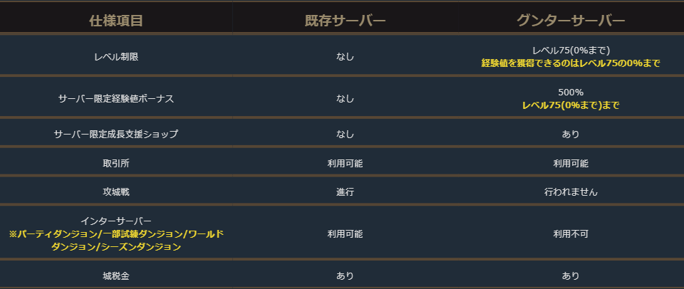 期間限定育成サーバーはレベル75までのキャラクターを快適に育成できる限定サーバーです。