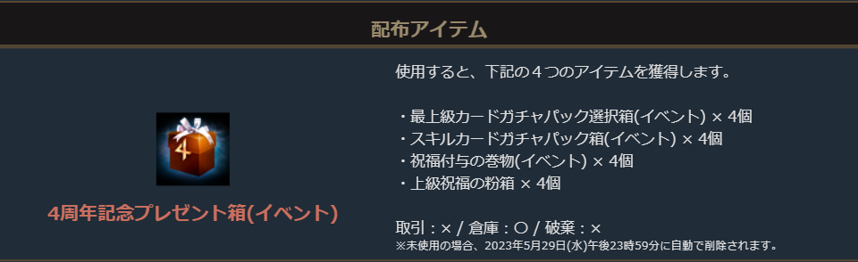 以下の時間に4周年サプライズプレゼントをお届けいたします。