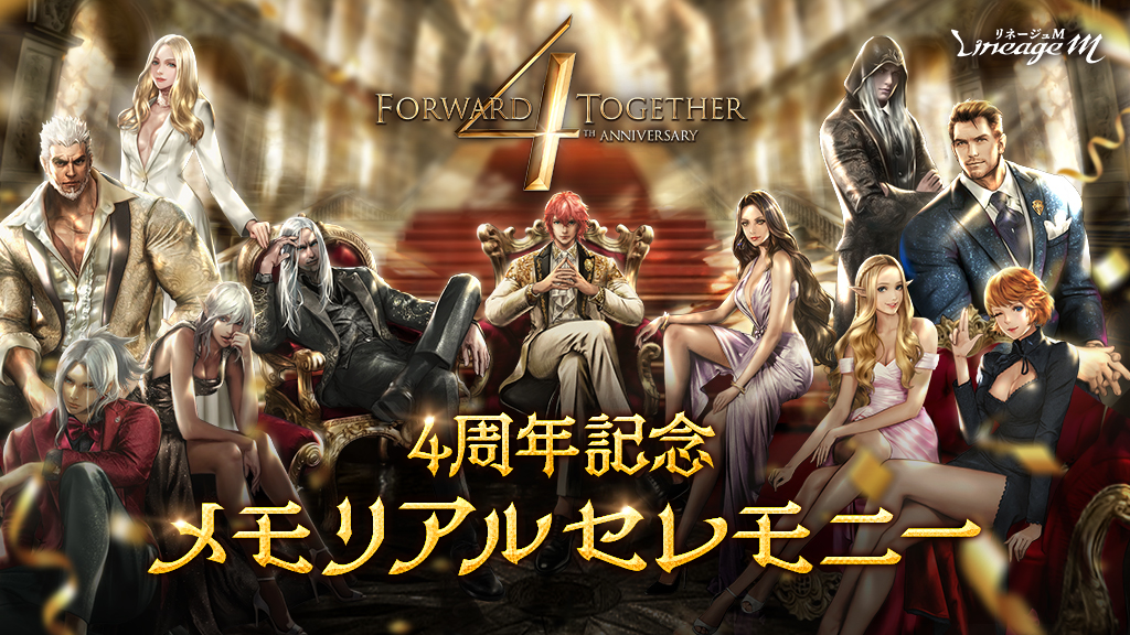 プレイヤーの皆様も血盟員や友人の方と4周年を迎えたリネージュMを共にお祝いしお楽しみください。