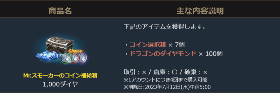 「Mr.スモーカーのコイン補給箱」は沢山の「コイン選択箱」と一緒に「ドラゴンのダイヤモンド」が手に入るお得なパッケージになっております。