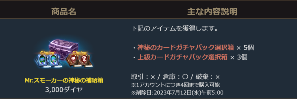 「Mr.スモーカーの神秘の補給箱」は沢山の「神秘のカードガチャパック選択箱」と「上級カードガチャパック選択箱」がセットで手に入る変身カードやマジックドールカードを沢山獲得出来るパッケージです。