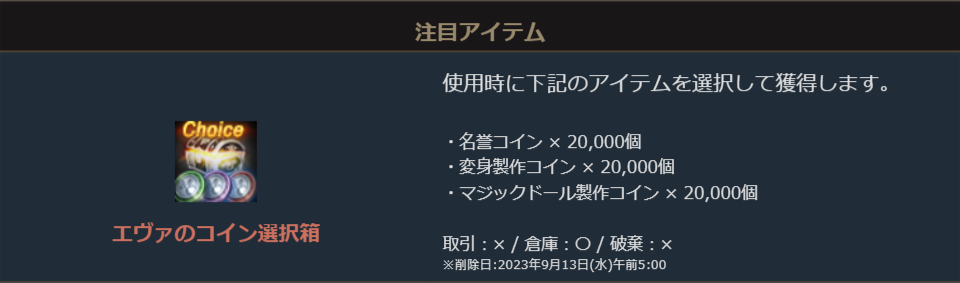 ※一部アイテムは未使用の場合、一定期間が経過すると自動で削除されます。詳しくは各アイテムの詳細をご確認ください。