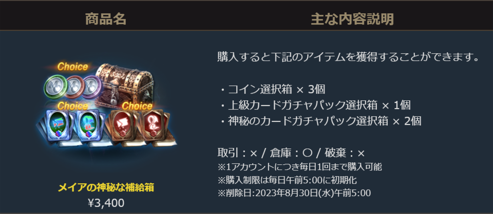 2023年7月19日より販売を開始しました「メイアの神秘な補給箱」のご案内を申し上げます。