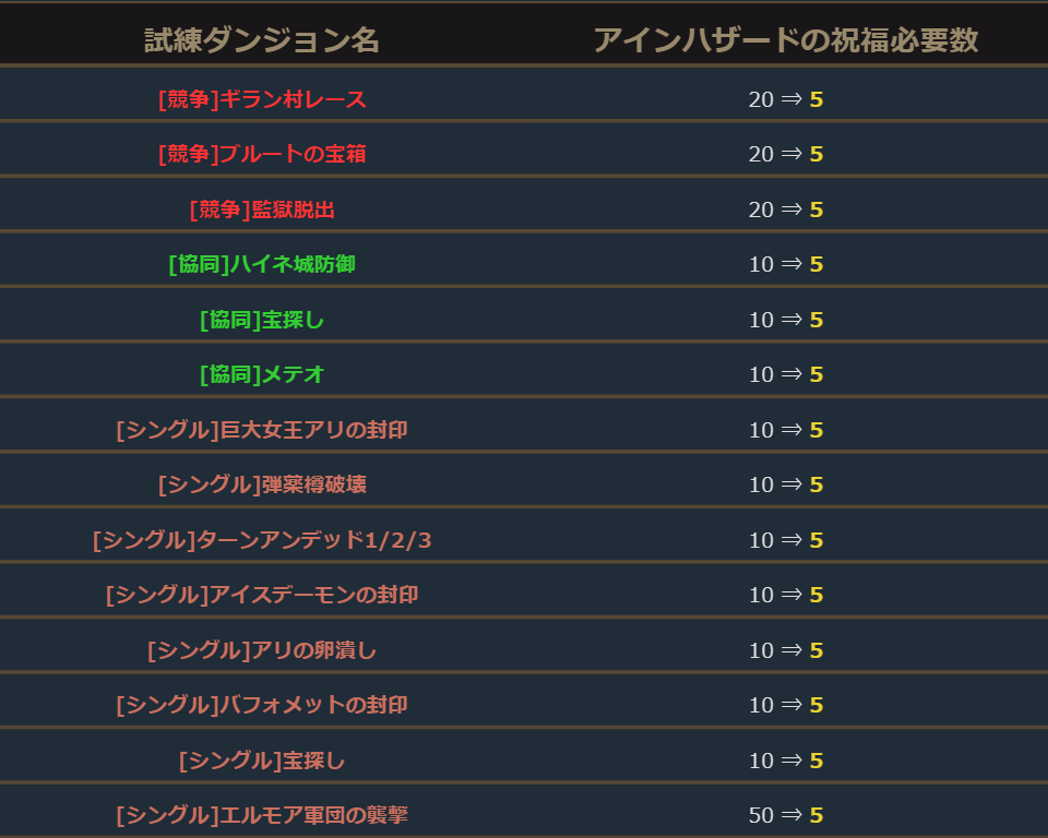 イベント期間中、全ての試練ダンジョンの入場に必要な「アインハザードの祝福」が「5」になります!