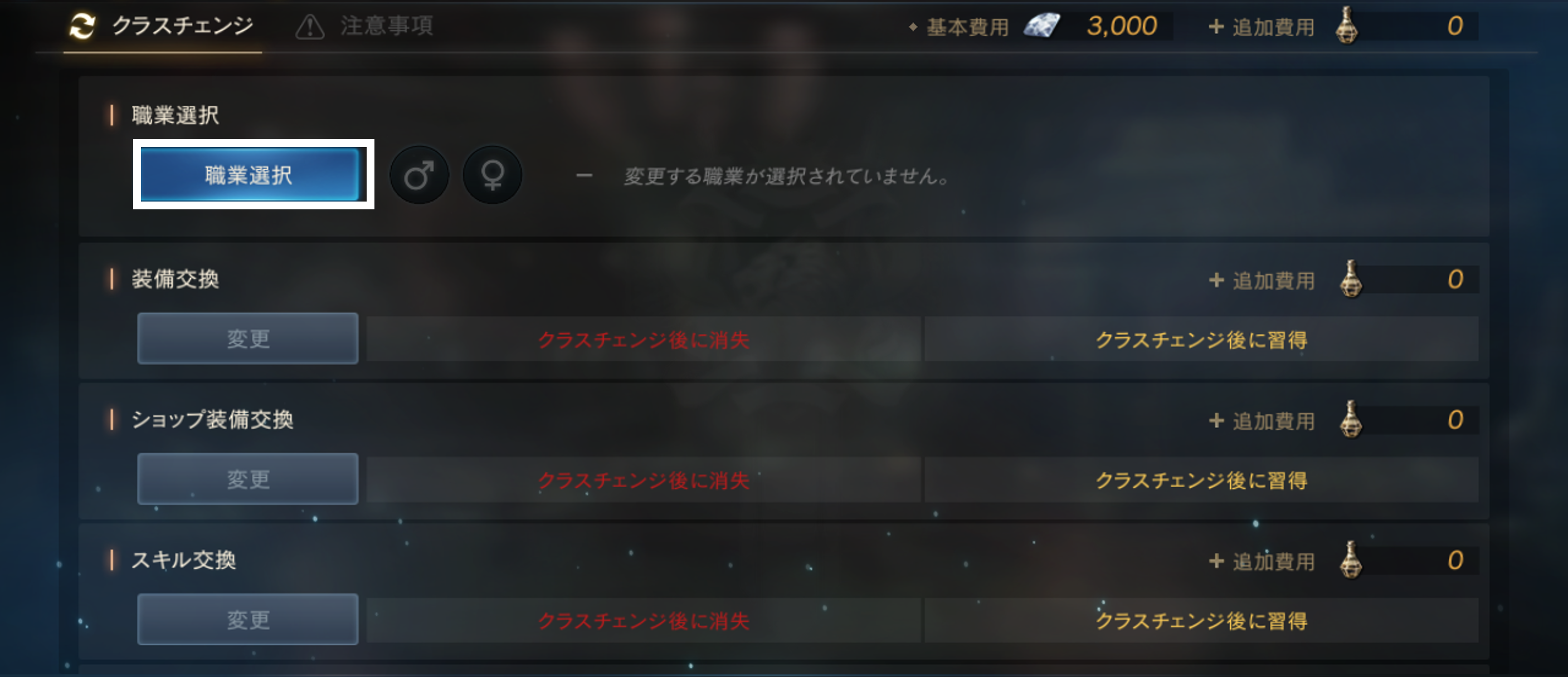 クラスチェンジは、アカウントごとに各職業1回のみ購入可能です。