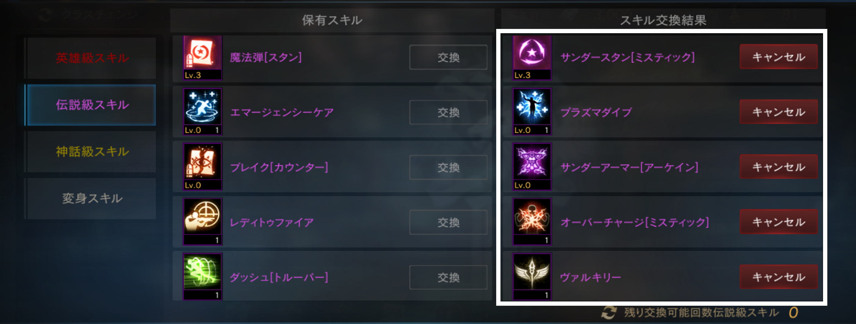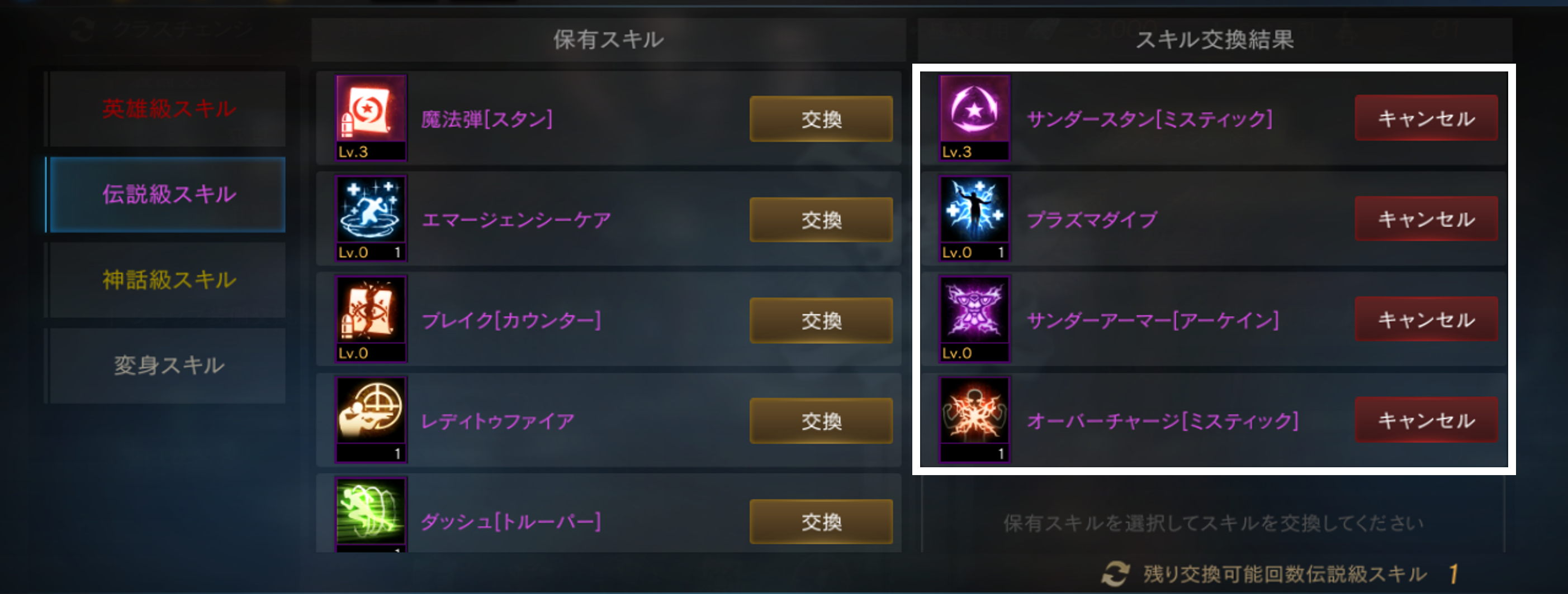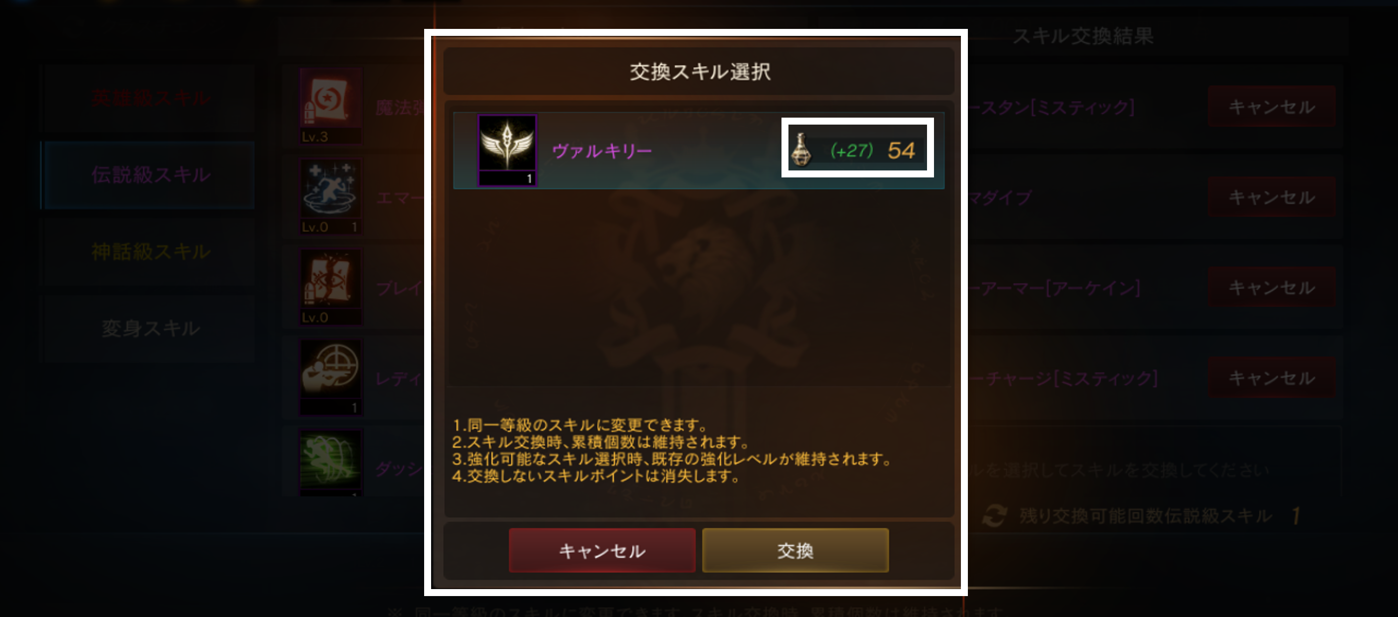 同様に「伝説級スキル」も交換が可能です。