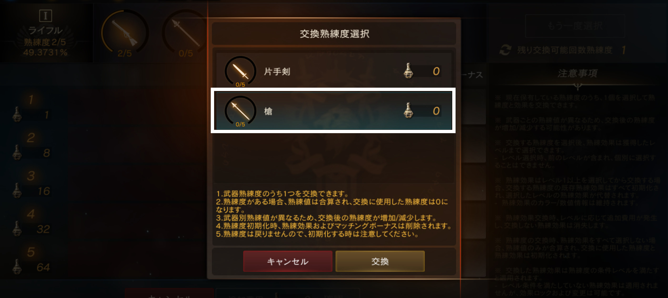 STEP.6 熟練度交換で、特定の武器熟練度を選択した職業に対応した熟練度に合算できます。