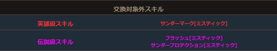 以下のスキルについてはクラスチェンジにてスキルの交換の対象外となります。