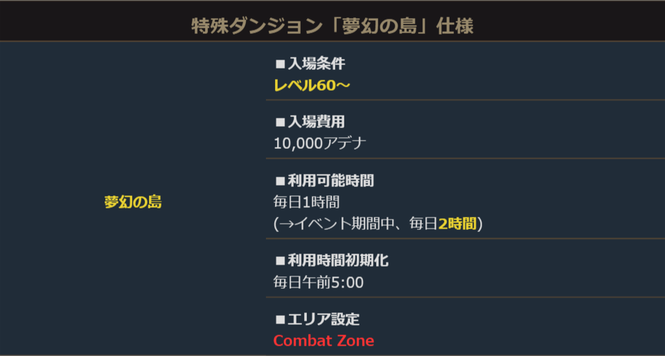 「夢幻の島」はレベル60以上で利用可能な特殊ダンジョンです。