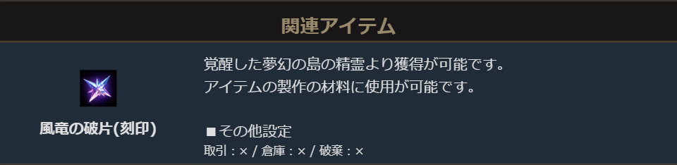 クエスト報酬にて獲得できるアイテム「風竜の破片(刻印)」の説明に削除期限が記載されていました。