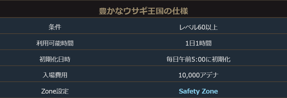 イベント期間中、レベル60以上のキャラクターが入場できる特殊ダンジョン「豊かなウサギ王国」が登場します。