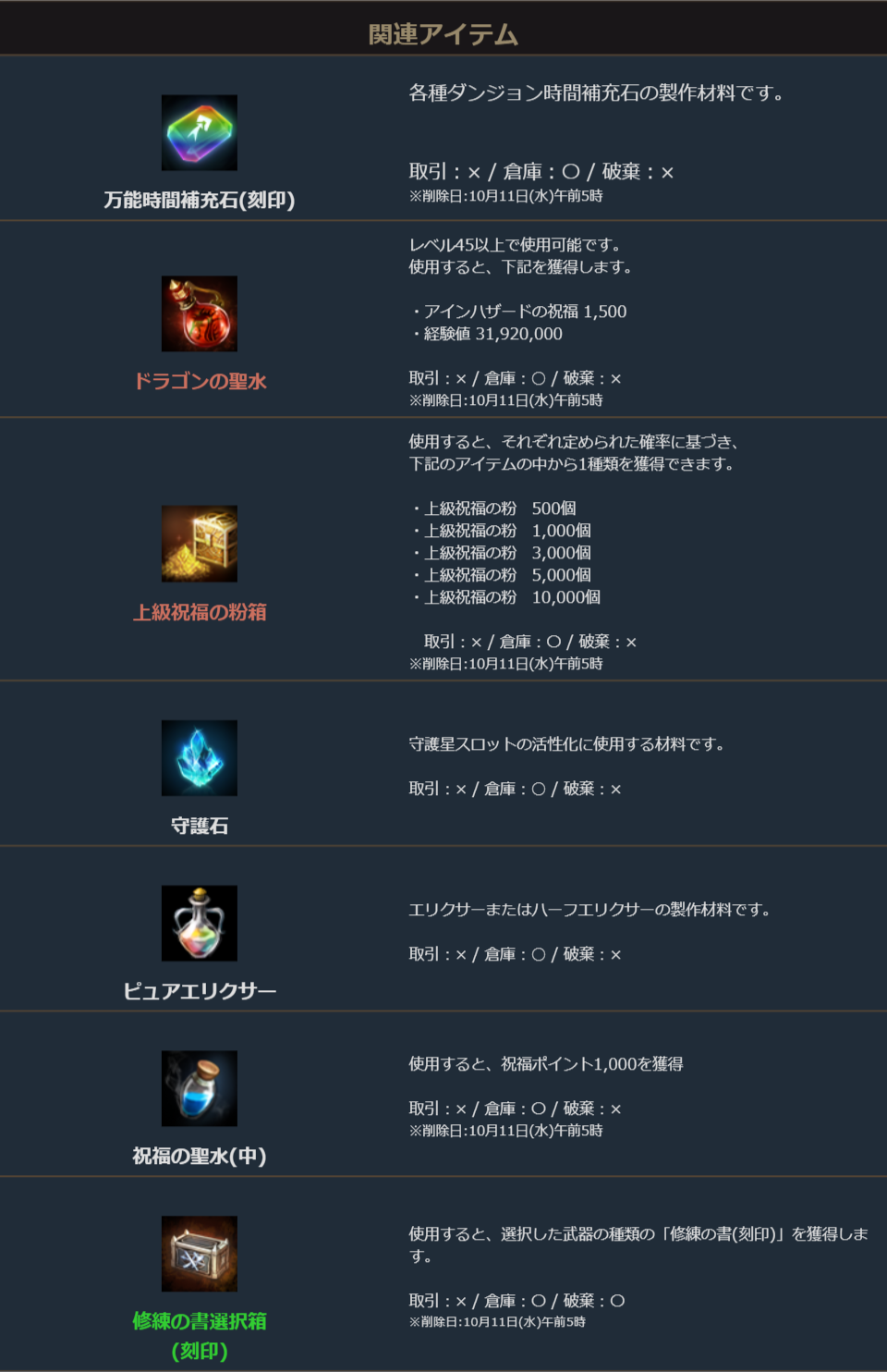 ※配布されるアイテムは条件を満たしたアカウント内の一番レベルの高いキャラクター宛に郵便にて配布します。