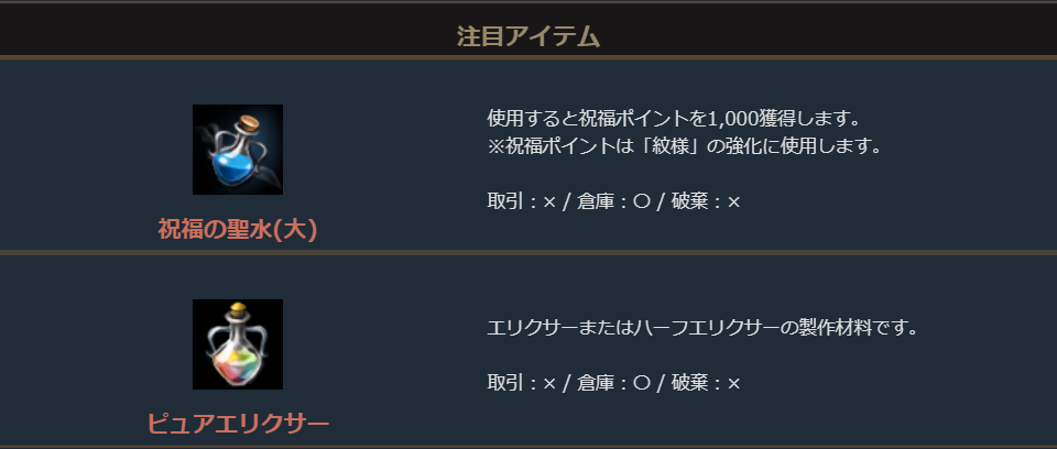 ※一部アイテムは未使用の場合、一定期間が経過すると自動で削除されます。詳しくは各アイテムの詳細をご確認ください。