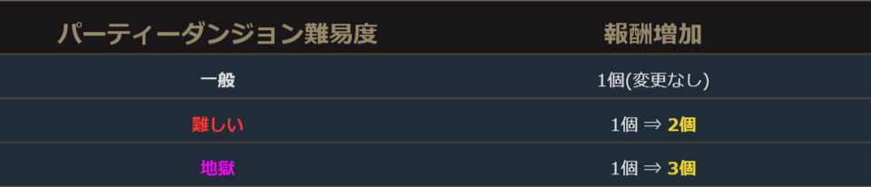 イベント期間中、特定の難易度のパーティダンジョン報酬が増加します。