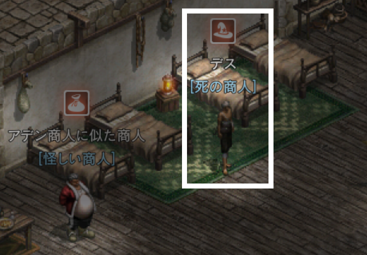 ・ギラン村のバグべ屋内にデス[死の商人]が出現します。