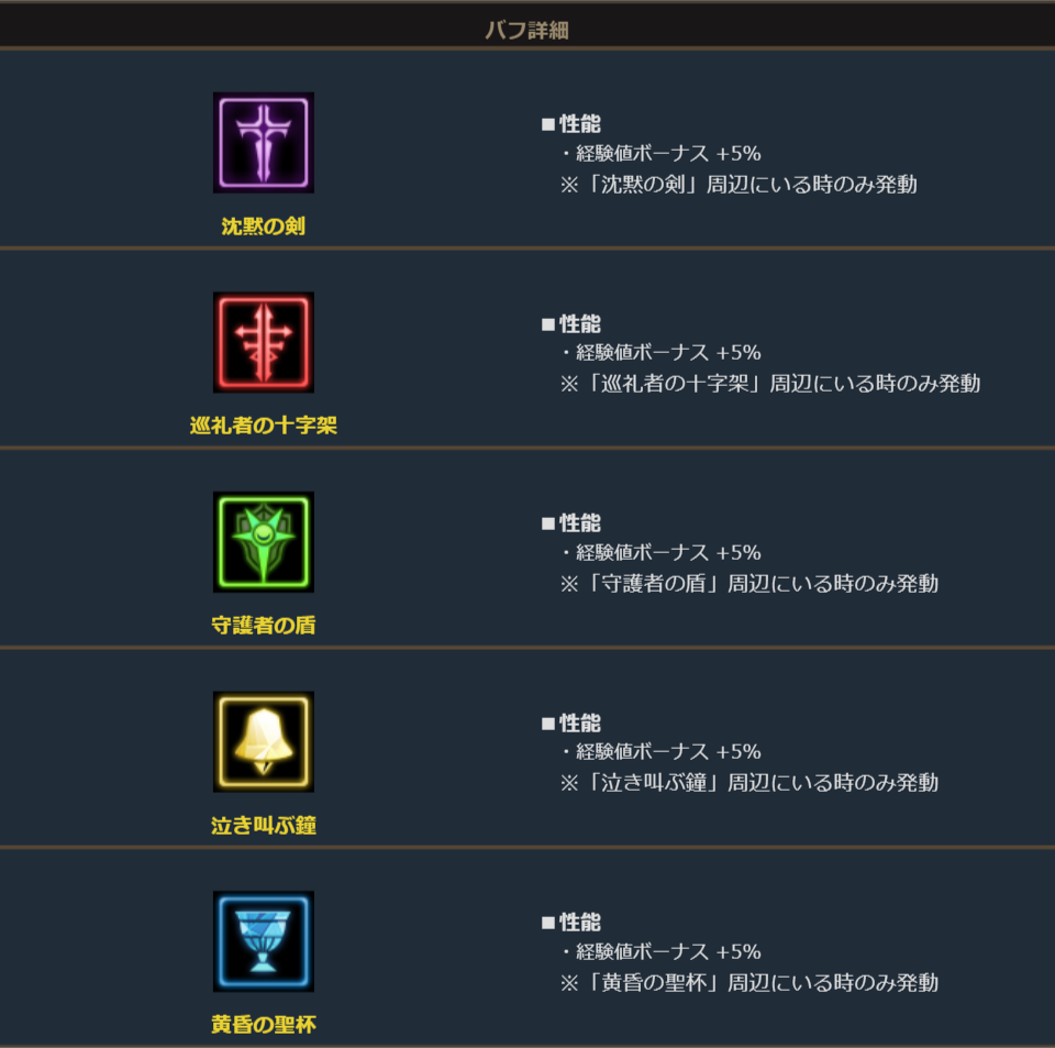 到達済みの石像周辺の領域内にいるとき、下記のバフが発動します。