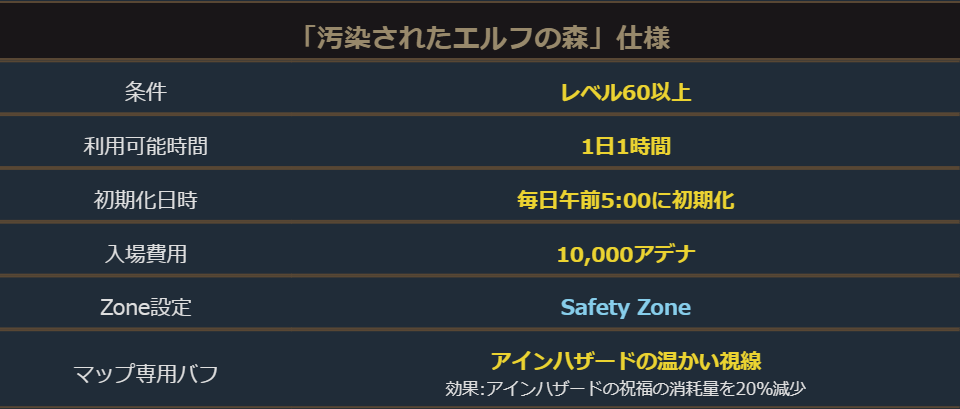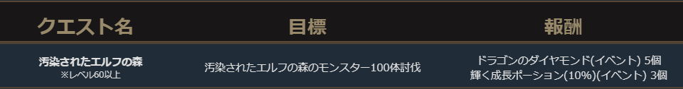 イベントダンジョン「汚染されたエルフの森」はレベル60以上のキャラクターが入場できるダンジョンになっています。