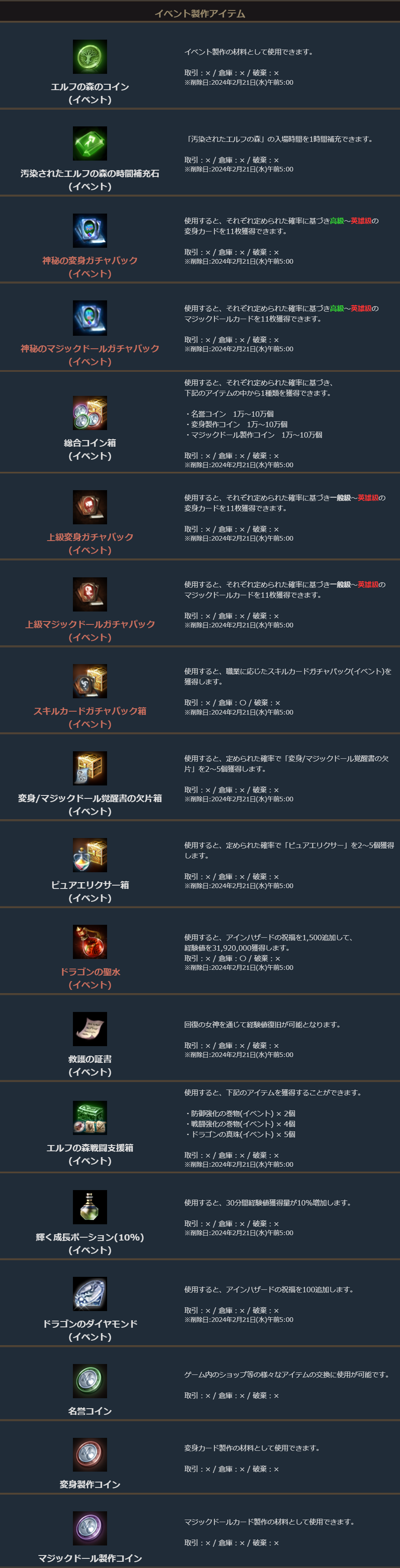※一部アイテムが期間終了後も未使用の場合、一定期間が経過すると自動で削除されます。詳しくは各アイテムの詳細をご確認ください。