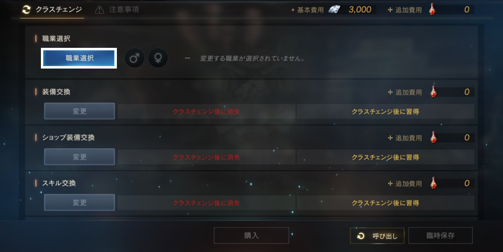 クラスチェンジは、アカウントごとに各職業1回のみ購入可能です。