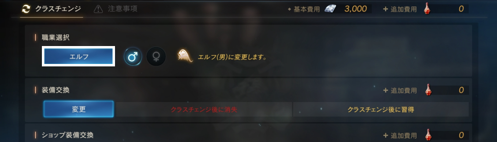 今回のクラスチェンジキャンペーンは「エルフ」へのクラスチェンジが可能になります。