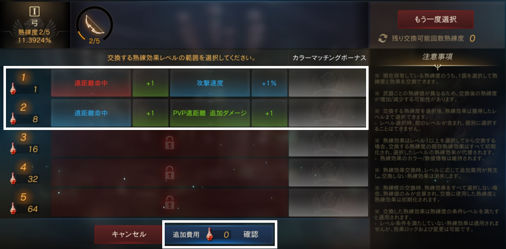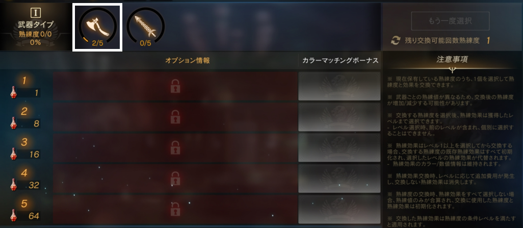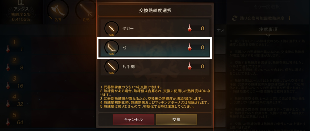 STEP.6 熟練度交換で、特定の武器熟練度を選択した職業に対応した熟練度に合算できます。