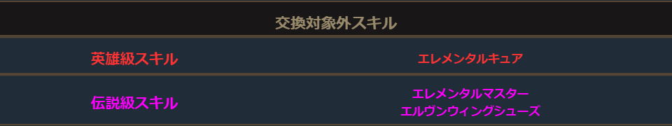 以下のスキルについてはクラスチェンジにてスキルの交換の対象外となります。