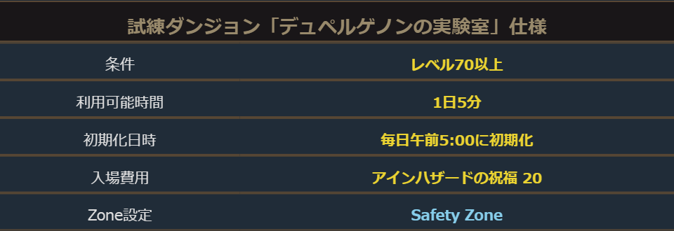 試練ダンジョン「デュペルゲノンの実験室」の入場条件は以下となります。