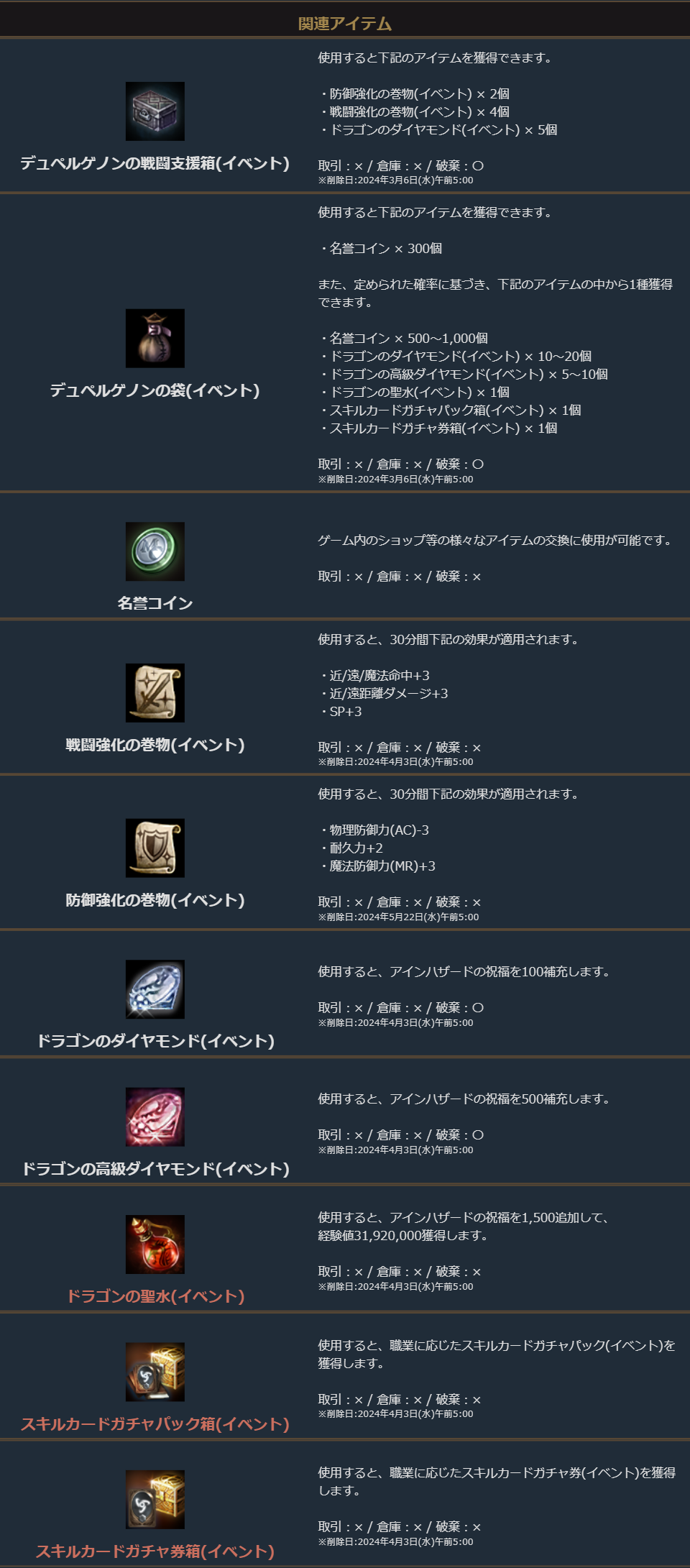 デュペルゲノンを討伐すると「デュペルゲノンの袋(イベント)」を獲得し、使用すると定められた確率に基づき、報酬を獲得することが出来ます。