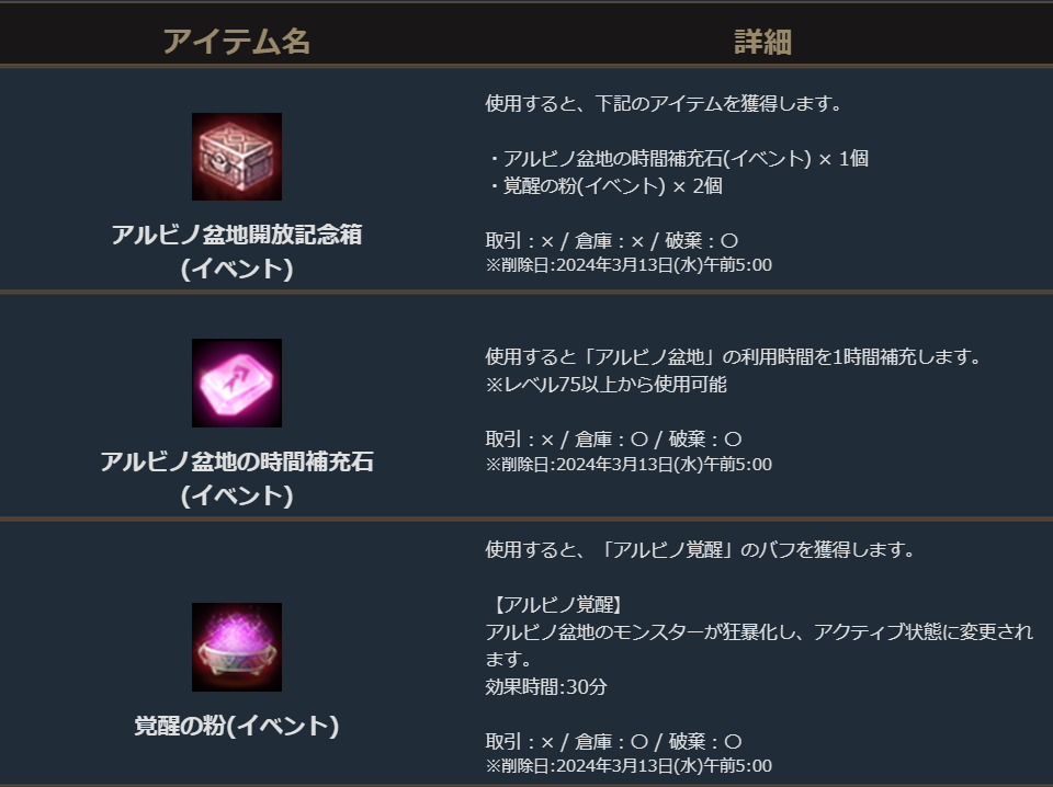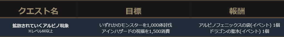 イベント期間中、アルビノ盆地のオープンを記念し、イベントクエストが配信されます。