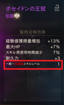 スキルレベル増加効果を持つ聖物を召喚した場合、定められたスキルの等級範囲に該当するスキルの強化レベルを増加させる効果が付与されます。