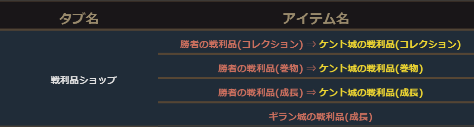 戦利品ショップに下記アイテムが追加され、一部アイテム名が変更されました。
