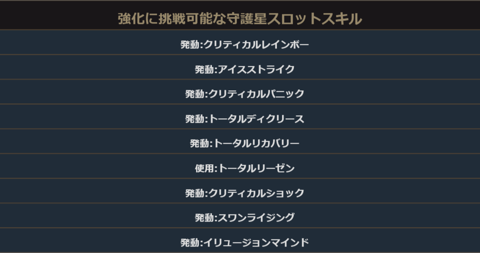 下記の守護星スロットスキルに、定められた確率に基づき性能を強化できる機能を追加しました。
