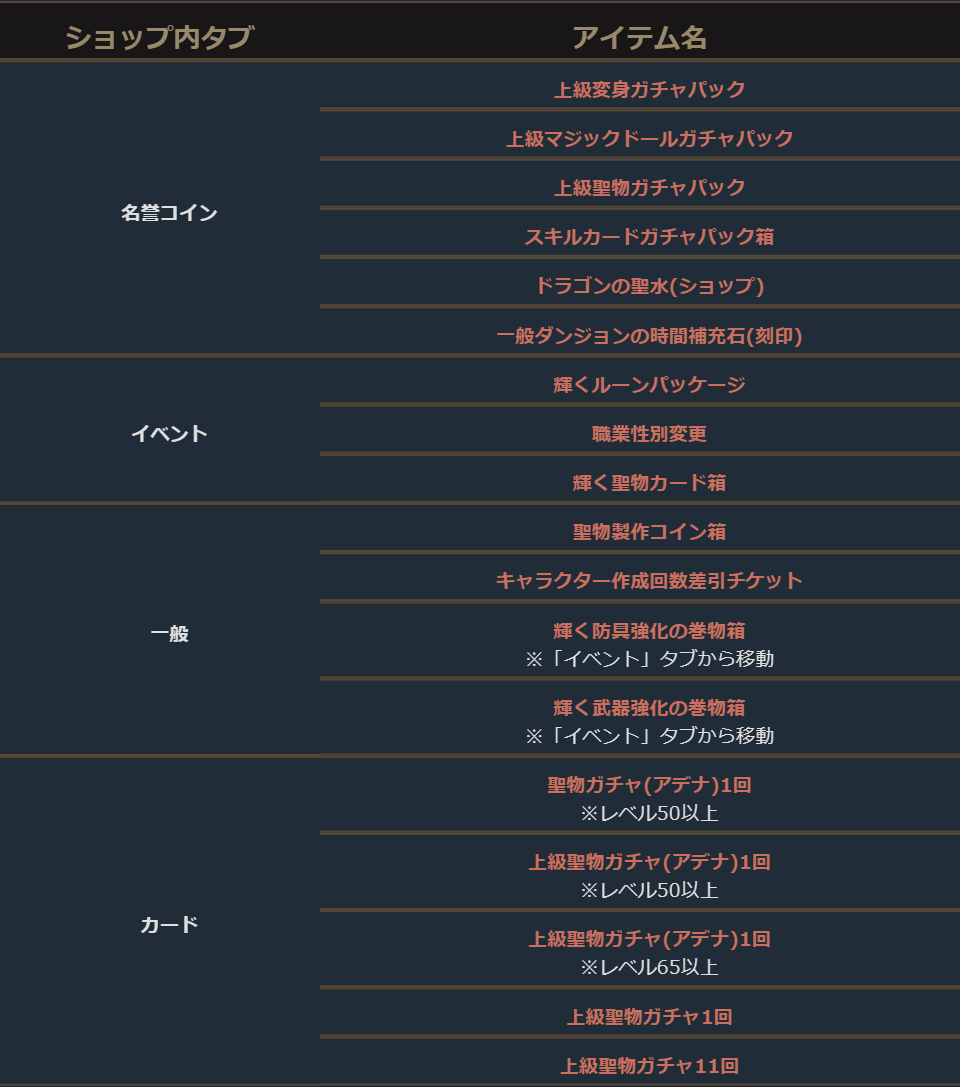 下記アイテムがゲーム内ショップに追加されました。各アイテムの詳細はゲーム内にてご確認下さい。